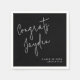 Einfache und unterhaltsame moderne Glückwunsch-Skripte auf schwarzem Hintergrund, großartige personalisierte Servietten für Graduiertenparty.