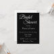 Einfache Stil, Brautduscheinladung mit einem trendigen, schwarzen Hintergrund, dem Namen und der Veranstaltungszeit der zukünftigen Braut, dem Ort, dem Kontakt usw., in weißer, stilisierter Schrift gedruckt. Personalisieren Sie Ihre Einladung, indem Sie Text durch eigene Brautparty-Informationen ersetzen. Wählen Sie Ihre Einladung Papier Stil und Quantität.