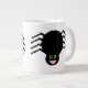 Diese phantastische Tasse ist mit einer schwarzen Spinne mit acht haarigen Beinen, gelben Augen mit großen schwarzen Pupillen und einer Mundöffnung mit ihren Fangzähnen ausgestattet.