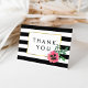 Les cartes de remerciement présentent des rayures noires et blanches chic avec une jolie fleur de couleur aquarelle et des accents faux or. Customisez avec un monogramme, un nom ou un texte de votre choix !