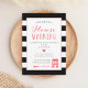 Des rayures noires et blanches aux accents roses coralliens créent une décoration féminine et masculine de house réchauffer soirée invitation. Les éléments "Coeur" et "Clé" peuvent se déplacer lorsque vous cliquez sur "customiser"