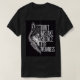 This is a black shirt with a wolf motivated quote image .