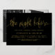 Feiern wir Braut und Bräutigam vor der Hochzeit. Mit dieser eleganten Probe-Dinner-Einladung laden Sie Familie und Freunde ein. Es zeichnet sich durch Kalligraphie mit klassischer Typografie aus. Personalisieren Sie diese durch Hinzufügen von Namen, Datum, Adresse und anderen Details. Diese Goldfolie The Night Before Einladung ist perfekt für jede Hochzeitszeit und jedes Thema.
