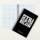 Notebook mit fett grafischem Design, das das Wort "TRIATHLON" in drei Komponenten aufteilt, die parallel zu erkennbaren Symbolen für die drei Veranstaltungen - SWIM, BIKE, RUN - ausgerichtet sind. Design in einer kuratierten Kollektion von modernen Farben. Perfekte Schulungszeitschrift, Ernährungsprotokoll, Planungswerkzeug, Motivationsnotizen, etc.