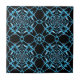Modern ceramic tile design featuring a geometric pattern composed of teal lines in on a black background.