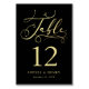 Diese Tischnummer-Karte zeigt skurrile Goldtypografie auf schwarzem Hintergrund geblüht. Sie können Ihre Daten im Menü "Anpassen" hinzufügen. Dieses Menü ist Teil einer wunderschönen Hochzeitssuite, die vollständig personalisiert sein kann.