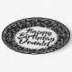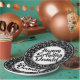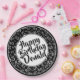 This over-the-hill design has a black and white random number pattern with a white milestone number 85 repeated in varied sizes and angles. There is a white circle in the center for your text and black and white rings around the rim.