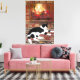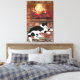 Black White Cat Lying front of Fireplace Leinwanddruck