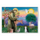 Der Heilige Franziskus, eine geliebte Figur, die konfessionelle Linien überquert, ist der Schutzheilige der Tiere. Die hier gezeigte Figur wurde von Giotto aus einem Meisterwerk aus dem 14. Jahrhundert adaptiert und in einen originalen Hintergrund eingefügt, hier mit einer Kurzen Haarkatze aus schwarz-weiß dargestellt.