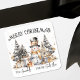 Add a festive touch to your holiday wrapping with this Christmas gift tag sticker featuring a charming watercolor snowman. The snowman wears a classic black top hat and gold scarf and is surrounded by festive trees, presents, and golden accents along the bottom—bringing a cozy and whimsical winter look to your packages.