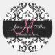 Damas noir et blanc encre Enregistrer les stickers Date avec Monogramme et Noms de mariée et de chambre et Mariage Date. Customisez avec vos noms, monogramme et date. Elke Clarke©