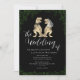 Make your wedding unforgettable with this unique black and white stylish modern dinosaur wedding invitation featuring a charming T-Rex bride and groom illustration. Perfect for couples who share a love of dinosaurs, this fun yet elegant wedding invite blends playful Jurassic personality with modern botanical style.