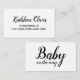 In diesem einfachen, modernen Design habe ich einen modernen Skript-Schriftart mit einer All-Caps-Schrift kombiniert, die serifenlos aussieht, um einen sauberen, hübschen Look zu erhalten. Auf der Vorderseite ist ein Platzhalter-Vorlagenfeld für den Namen der Mutter und Details über den Geschenkladen. Auf der Rückseite wurde "Baby auf dem Weg!" in zwei Teile gerendert - eine deutlich größere - und in die Mitte gelegt. Der Typ ist schwarz und der Hintergrund ein bearbeitbares Weiß, das in jede gewünschte Farbe geändert werden kann. Ebenso können Sie verschiedene Schriftart verwenden, wenn Sie mit den Zazzle-Editierwerkzeugen spielen und dieses Design auf Ihre Bedürfnisse aktualisieren möchten. Bitte lass mir, ob du Hilfe bei der Anpassung brauchst oder ob du besondere Wünsche hast. // Designed by Melody Watson for Paper Muserie.