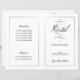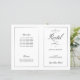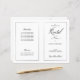 Ce programme est une page de 8,5 x 11 qui vous oblige à le plier pour l'assembler. La bordure de ligne s'estompe dans le coin, ce qui est intentionnel pour correspondre au style de script. Programme classique de considérant noir et blanc avec une touche moderne avec l'élégant script du mot "considérant" sur la "couverture" extérieure.