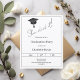 A modern and stylish black and white invitation for a graduation party. Text: She did it! Decorated with a black graduation cap. Personalize and add a name and the details.