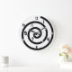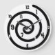 Modern clock done in black and white, with a big black spiral design against a white background. Number are done in black and white. Customize to add text to this fun wall clock.