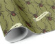 Spooky spiders on wrapping paper for Halloween or a horror fan. Use "Personalize this template" to change the "Happy Halloween!" text and create a unique, customized paper. Featuring a busy pattern of a shiny black widow spider with striking red and yellow markings. My original illustration in the blocky, pixel art style, based on images of a Southern Black Widow for fans of exotic arachnids or dark, gothic themes.