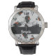 Uhr, Vintage Männeruhr mit schwarzem Lederarmband