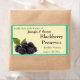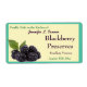 Reiche reife BlackBerry mit Blätter sind in der links unteren Ecke dieses Labels mit hellgelbem Hintergrund eingebettet, umgeben von einem Rand und einem Hintergrund von türkisfarbenem Grün, was dieses Etikett zu einem perfekten Etikett macht, um auf den Gläsern hausgemachten BlackBerry-Marmelade oder Konfitüren zu verwenden. Der Text befindet sich im Vorlagenformular, sodass Sie ihn auf das ändern können, was Sie möchten.