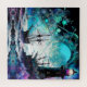 cooler Leuchtturm und Segelboot in stürmischen Meeren in aquamarinen und lila Schwarz-Licht-Farben moderne industrielle abstrakte Kulisse Ai Art von minx267