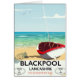 Blackpool, Lancashire, England Vintage Schienen-Poster eines alten Ruderboot oder Fischerboot am Sandstrand.
