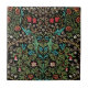 Diese dekorative Keramik-Kachel zeigt das Blackthorn-Muster, das 1892 von William Morris & Co. Morris entworfen wurde, war ein bedeutender britischer Künstler der Kunsthandwerksbewegung, bekannt für seine aufwändigen Entwürfe von Wildblumen und Weinreben. Verschiedene Blumenarten Set vor dunklem Hintergrund.