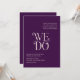 Moderne Hochzeitseinladung mit minimalem Layout mit "We Do" in fett formatierter Typografie in der Mitte. Alle Designelemente sind in Pflaume lila und Elfenbein und können im Designbearbeitungstool geändert werden. Diese einfache und elegante Hochzeitseinladung eignet sich hervorragend für eine informelle oder formelle Hochzeit.