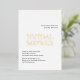 Moderne Brautduscheinladung mit minimalem Layout mit "Brautparty" in fett formatierter Typografie in der Mitte. "Brautparty" ist in realer Folie und der restliche Text in Schwarz/Weiß. Der gesamte Text kann im Entwurfsbearbeitungsprogramm in Folie geändert werden. Diese schlichte und dennoch elegante Brautdusche lädt zu jeder Art von Brautparty ein.