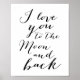 Typographie noir Je vous aime à la Lune et posters imprimés sur arrière - plan blanc mat. Les dimensions de l'affiche sont de 8 pouces sur 10 pouces.