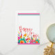 L'art fantasque. Carte de note "Joyeux Jour" brillante, merci note. Chambre à l'arrière et à l'avant pour note. Rose, aqua, jaune soleil floral moderne.