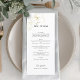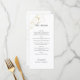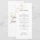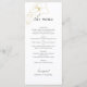 Ce menu mariage chic et élégant présente un ensemble contemporain de polices et d'éléments de script contre un arrière - plan blanc, ainsi que des contours floraux délicats en faux or.