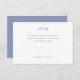 Geben Sie dieser Karte Ihre persönliche Touch. Diese chic Kleidungskarte verfügt über 5 leere Punkte, die Sie per Hand füllen können, indem Sie Wasserfarbe oder ein anderes Medium verwenden. Die Vorderseite ist mit einem zeitgenössischen Schriftart in staubblauer Farbe mit weißem Hintergrund versehen, während auf der Rückseite ein weißes, blumenfarbenes Monogramm mit einem staubblauen Hintergrund angebracht ist. Dieser Artikel ist Teil einer Hochzeitssuite, die Einladungen und andere Produkte beinhaltet.
