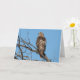 Ein Foto eines Rotschwanzhawks, das auf einem Ast mit einem hellblauen Himmel im Hintergrund gekrönt ist.