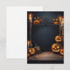 Halloween Einladungskarte verströmt einen festlichen und sprichwörtlichen Charme, der perfekt für ein Halloween-Fest geeignet ist. Der zentrale Leerraum erwartet Ihre personalisierten Veranstaltungsdetails, flankiert von glühenden Kürbissen, warmen Kerzenlicht und verstreuten Herbstblättern. Im Obergeschoss des Hotels erwartet Sie eine Reihe von bunten Lichtern und flatternden Fledermäusen. Der dunkle Nachthimmel rundet das Halloween-Thema ab und macht diese Karte zu einer idealen Wahl, um die Gäste zu einem unvergesslichen Halloween-Party einzuladen.