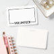 Blank Volunteer Name Tag mit Titel in schwarzem, fettgedruckten Sans Serif Schriftart mit Leerzeichen für Ihren Namen auf weißem Hintergrund mit schwarzem Rand.