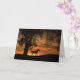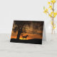 Ein schönes trottierendes Pferd in einem Sonnenuntergang mit alten Eichenbäumen. Die Natur ist schön! Eine großartige Blankokarte für den jeder Anlass.