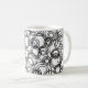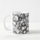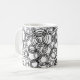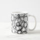 Diese Tasse hat ein modernes Design von konzentrischen Kreisen aus der Mitte des Jahrhunderts, die über das gesamte Design verstreut sind.