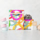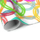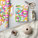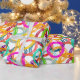 Dieses Verpackungspapier hat ein geometrisches Design von drei Kreisen, verschachtelt und über das Design in mehreren Farben verteilt.