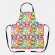 Diese Schürze hat ein geometrisches Design von drei Kreisen, verschachtelt und über das Design in mehreren Farben verteilt.