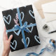 Blassblau auf schwarz handgezogenen Herz-Umschlagp Geschenkpapier