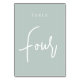 Blasse grüne Hand Skripte Tabelle vier Tischnummer