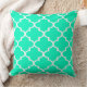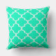 Fügen Sie ein einfaches und lustiges Statement hinzu und geben Sie Ihrem Wohnraum ein Update mit diesem on-Trend marokkanischen Viereck dekorativen Quadratwurfkissen. Mit einem weißen geometrischen Vierblattgeflecht, das vor einem hellen, grünen Hintergrund mit Pfefferminzfarbe gedruckt wurde, verleiht es jedem Zimmer, Stuhl oder Bett eine schöne Detaillierung.