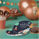 Niedliche Geburtstag-Party-Papiertafel zur Illustration einer Galaxie im Kreise, einschließlich eines Astronauten, U.F.O., Planeten, Sterne, Rakete. Im Typografentext oben steht "3...2...1...Blast Off" Anpassen Sie dieses Produkt an, indem Sie den Namen, das Alter und das Datum des Kindes hinzufügen. Gut für das Party eines Jungen.