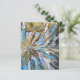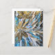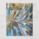 Das Bild zeigt goldenes Set mit Blume auf abstraktem, blauen Hintergrund. Die Blume haben einen reichen, metallischen Schimmer, der sich wunderschön mit den verschiedenen Blautönen dahinter kontrastiert. Der blaue Hintergrund ist fließend und texturiert, wobei die Farbverläufe von tiefem Azurblau bis hin zu hellen Himmelstönen reichen und eine traumhafte, ätherische Atmosphäre schaffen. Die Blume mit ihren feinen Blütenblättern und feinen Details scheinen in diesem ruhigen Raum zu schweben oder zu blühen und geben dem Bild sowohl Wärme als auch Ruhe. Die Gesamtkomposition fühlt sich ausgeglichen und gleichzeitig dynamisch an, mit einem Gefühl der Harmonie zwischen dem lebendigen Gold und beruhigendem Blau.