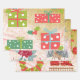 Blätter aus Weihnachtsverpackungspapier mit Zügen, Kränzen, Geschenken und Blume. Dank Creative Fabrica für einige der Elemente in der Gestaltung.