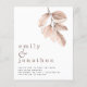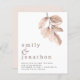 Blätter, bei denen das Hochzeitsstichtum im Haushalt liegt, speichern das Datum. Eine preisgünstige SMALLER 4.5" x 5.6" Alternative. Erhältlich in einem SEMI GLOSS 110lb CARD STOCK oder einem SATIN FINISH 80lb THINNER PAPIERSTOCK. Umschläge sind optional. . Informeller Stil. Weiche Blätter in Rosa und Creme fließen von oben rechts hinein und Ihre Namen sind unten groß in stilvollen Kleinbuchstaben mit den Details unten. Personalisieren Sie den Text einfach auf Ihre eigenen Daten.