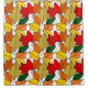 Dieser Duschvorhang hat ein Design von Blätter, die wiederholt werden, um einen Haufen von Blätter in den Farbtönen Gelb, Rot, Orange und Grün.