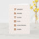 Eine besondere Karte für Ihren Vater, mit den Briefen VATER verwendet, um die Worte, die ihm sagen, wie wunderbar er ist zu markieren. Fantastisch, entzückend, entzückend, heroisch, außergewöhnlich, zuverlässig. Der Hintergrund sind verstreute Eichen-Blätter, um die Kraft zu symbolisieren, die ein Vater seiner Familie bringt. Die Inneneinrichtung ist mit mehr Eichenfässern geschmückt, und ein individueller Gruß ist vorhanden: "Herzlichen Glückwunsch zum Geburtstag eines wunderschönen Vaters". Geben Sie das Feld ein, um dies zum Beispiel in "Glücklicher Tag des Vaters" zu ändern.