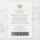Grün, schwarz auf weißem Beauty-Produkt-Etikett mit zwei grafischen Blätter in einer Herzform oder ersetzen Sie es durch Ihr eigenes Logo. Fügen Sie in Ihrem eigenen Bio Schönheitsprodukt Inhaltsstoffe, Firmennamen, Anschrift, Produktdetails und Strichcode hinzu. Original-Logo-Kunst und Design von Sarah Trett für www.mylittleeden.com