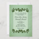 Eine schöne grüne Einladung mit Rändern von grünen Blätter. Setzen Sie die Vornamen des Paares auf einer Seite mit allen Informationen und Begrüßungen der Mutter und des Vaters der Braut. Bitte dreimal Karo deinen ganzen Text.